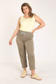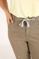 • •  Taille élastiquée avec cordon à nouer