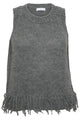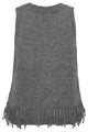 Pull sans manches uni à franges