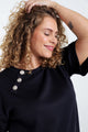 • T-shirt uni avec boutons décoratifs-Paprika-3