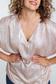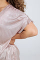 Unifarbene, glänzende Bluse mit Ballonärmeln
