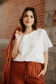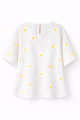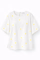 Uni Baumwollbluse mit bestickten Gänseblümchen