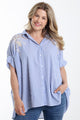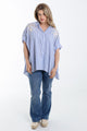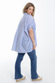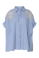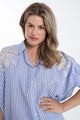 Oversized gestreifte Baumwollbluse mit Stickereien