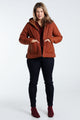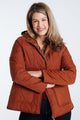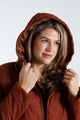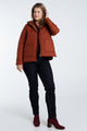 Kurze, unifarbene Daunenjacke mit großen Taschen, Kapuze und Stickerei