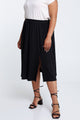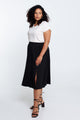 • •  Halblanger Rock mit Schlitz