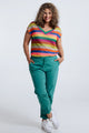 Unser Modell Aglaé ist 180 cm groß und trägt Größe 44 (= Paprika Größe 1)
