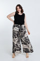 Weit geschnittene Viskosehose mit gezeichnetem Blumenmuster