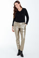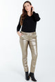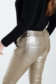 Unifarbene 7/8-Hose aus Viskose mit Metallic-Beschichtung