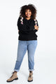 Einfarbiger Pullover mit Stickeffekt an den Ärmeln