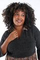 Unser Modell Sharon ist 178 cm groß und trägt Größe 48