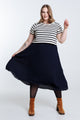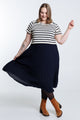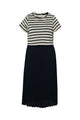 2-in-1-Kleid mit Marine-Streifen und plissiertem Rock