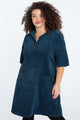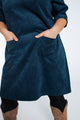 Kurzes, unifarbenes Cordkleid mit aufgestickten Taschen