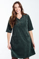 Kurzes, unifarbenes Cordkleid mit aufgestickten Taschen