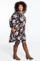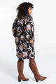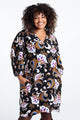 Kurzes, gerade geschnittenes Kleid aus Crêpe mit Blumendruck