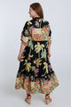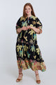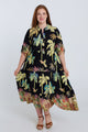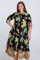 Langes Kleid aus bedruckter Baumwolle mit Palmenmuster