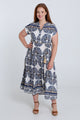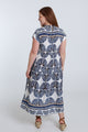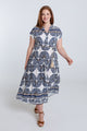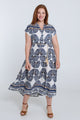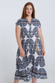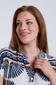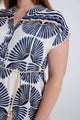 Langarmkleid aus bedruckter Viskose mit Blattmuster