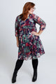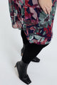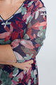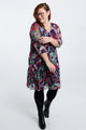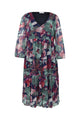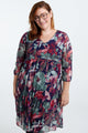 Kurzes Tunikakleid aus knitterigem Fischnetz mit Blumendruck und Lurex
