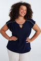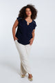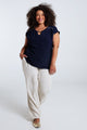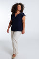 T-Shirt aus zwei Materialien mit Rundhalsausschnitt und Schlaufe
