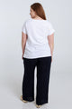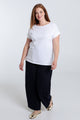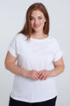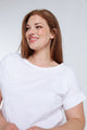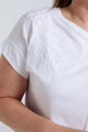 Einfarbiges Baumwoll-T-Shirt mit bestickten Blumen