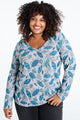 Warmes gestricktes T-Shirt mit Blattmuster und Strasssteinen