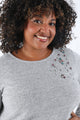 Uni einfarbiges T-Shirt aus warmem Strick mit Schmuckdetail