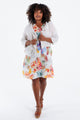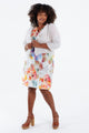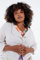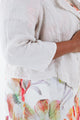 Kurze Jacke aus bedrucktem Leinen mit Blumenmuster