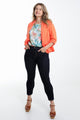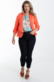 Kurze, unifarbene, offene Jacke mit Ärmeln zum Hochkrempeln